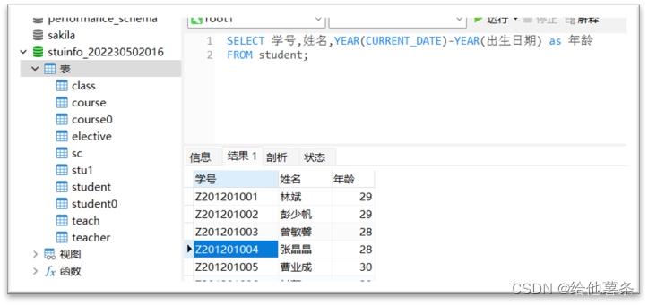 - 从“学生”表中查询学生姓名、年龄和总分的信息,并按照年龄的升序排序,年龄相同时按照总分的降序排序。