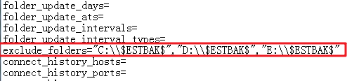 - 打开“C:Users**AppDataRoamingEverything”目录下的Everything.ini,找到关键字“exclude_folders=”,在此后面加入对应文件文件夹信息即可。