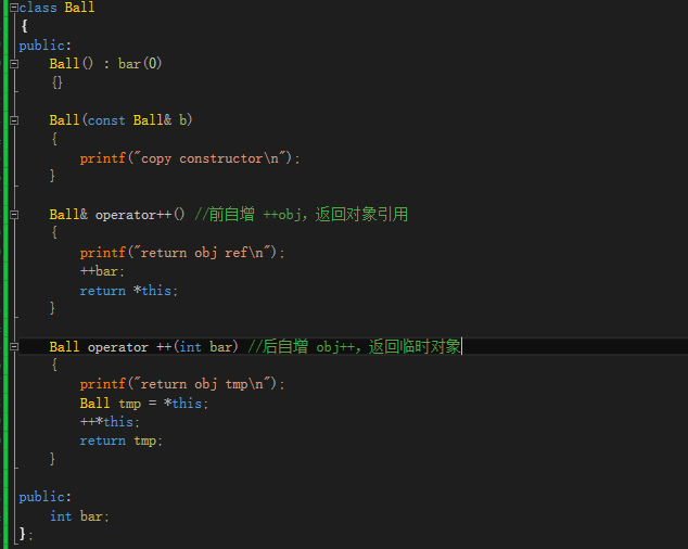 用户定义类型对操作符的重载应与内置操作符的行为相似,而且后自增/减往往是引用前自增/减来作为其实行的一个副本。