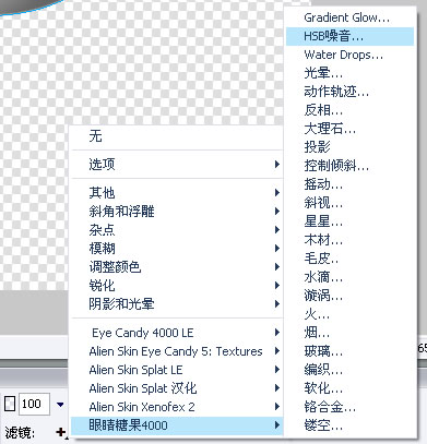 点选画好的圆形,在属性面板滤镜选项里选择[眼睛糖果4000(eye canday 4000)]--->HSB噪音属性如下图: