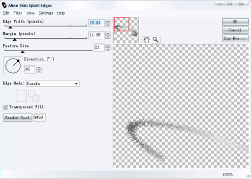 第七步: 选取刚做好的扁形位图,选择滤镜-->Aline skin splat le-->Edges.属性如图: