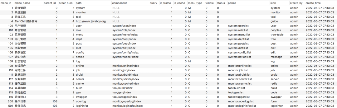 好啦,这个就是整个的查询逻辑,整体上来说是比较容易的,就是查询 M 和 C 类型的菜单,然后再做一个递归操作,将菜单数据变成一个树状数据。