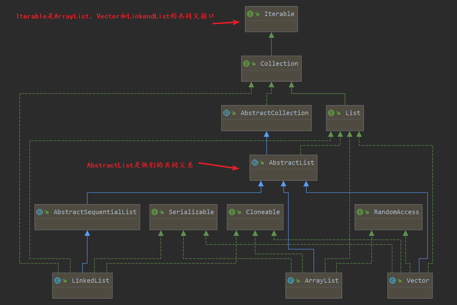 - Iterable 是ArrayList和LinkedList的共同父接口。