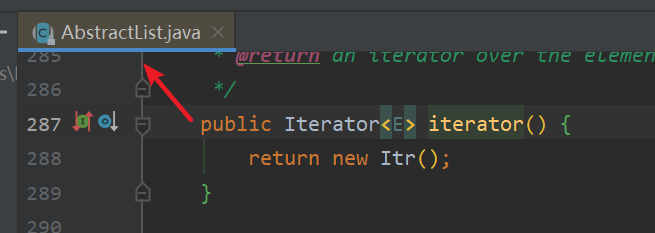 step 2:进入到 AbstractSequentialList 抽象父类中,惊奇的发现 iterator 做了一件调用listIterator 方法的动作,而且还把返回值类型 限制为了 Iterator接口!(妙!)