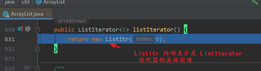 ArrayList 集合的 listIterator 方法的具体实现源码解读: