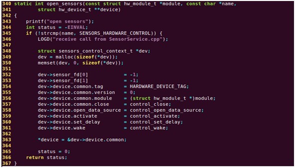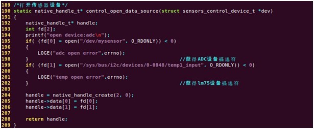 定义open_sensors函数,来打开Sensor模块,代码如下: