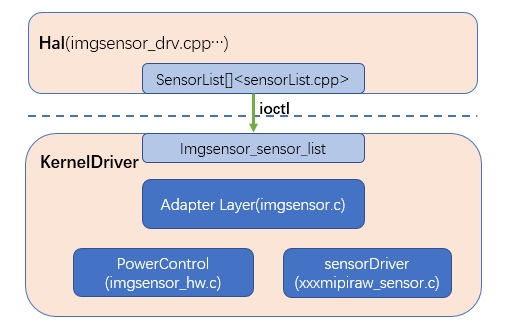 sensor的上下电以及sensor具体的操作,结构图如下: