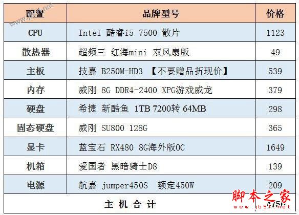 4800元i5-7500配RX480全能家用游戏主机配置单
