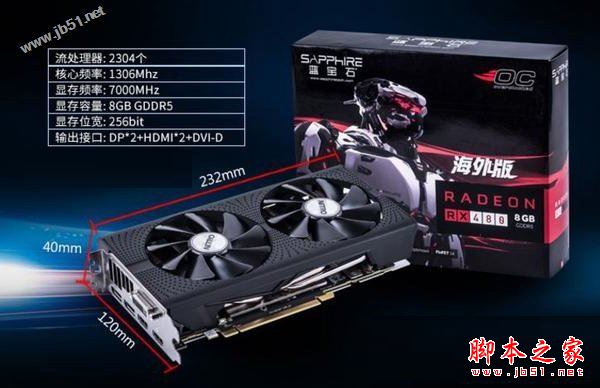 蓝宝石RX480 8GB海外OC版自带金属背板,采用双滚珠轴承风扇、智能停转技术,温度和噪音控制都比较出色,另外配备了8GB超大GDR5显存、256bit大位宽,性能上定位中上水平,对于主流网游和一般单机游戏,都有较好的驾驭能力,是目前中等偏上显卡中比较超值的选择。