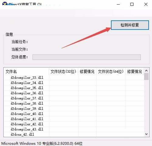1、大家可以使用Directx修复工具来进行修复,下载之后双击运行这款程序,然后在程序中点击“检测并修复”按钮进行检测!