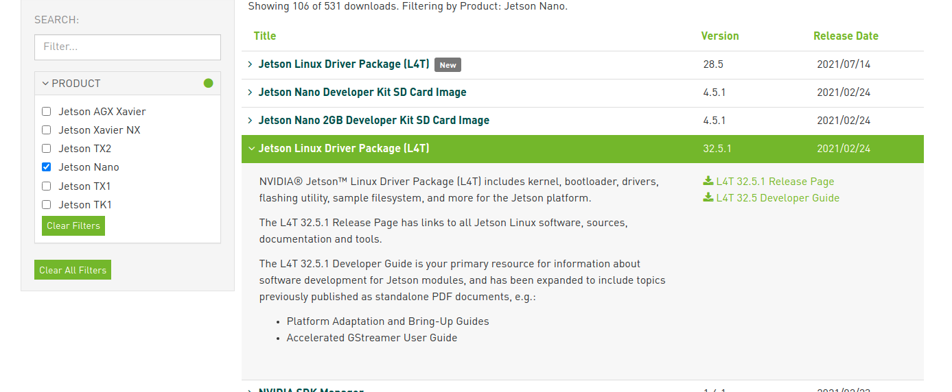 我们点击release page, 选择jetson nano source里的L4T Driver package sources,注意一定是选你机型的,你是NANO就选nano,是xavier就要xavier。