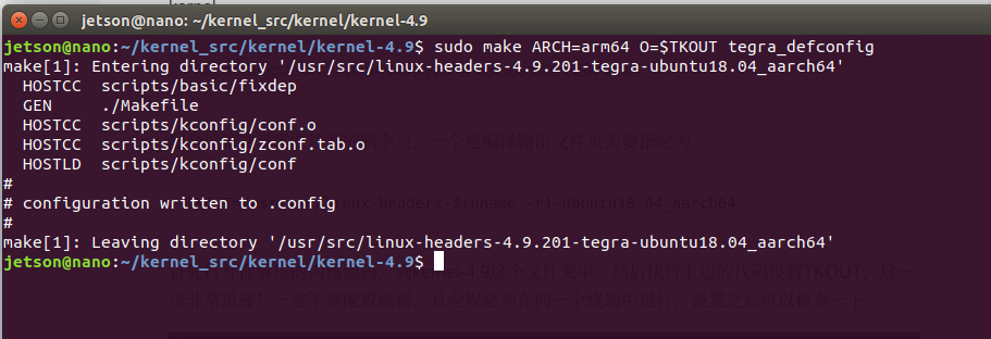 sudo make ARCH=arm64 O=$TKOUT tegra_defconfig