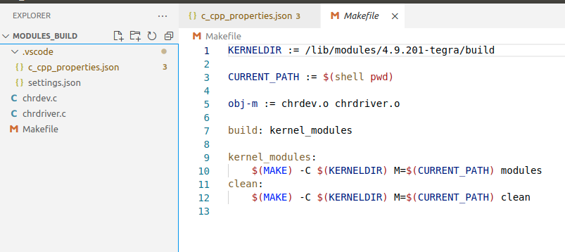这里我们用VS code做编辑器。这里除了驱动文件以外,还需要包含头文件的位置以及写makefile。
