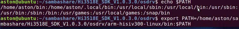 export PATH=/home/aston/sambashare/Hi3518E_SDK_V1.0.3.0/osdrv/arm-hisiv300-linux/bin:$PATH
