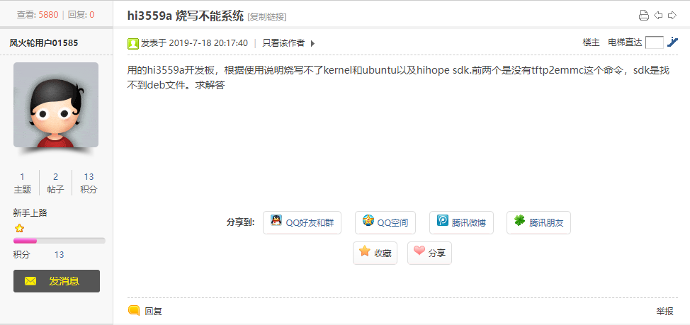 这行指令运行结果是 tftp2emmc 命令不存在。说明书不符合,咋弄呢。找到老师推的开发板的提供商的论坛,发现了同样的问题(19年提问)但是没人回答,这个团队不是做教程服务的,客服态度也并不好 ,与淘宝宣传的提供工程师一对一服务的宣传。想通个电话都这么费事,与宣传不符。