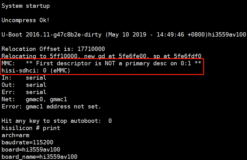 最终想法只能是自己想办法尝试解决了,我了解到我们现在已经进入的界面是 u-boot界面可以通过TFTP协议安装和下载系统,但是现在是 u-boot本身出问题了我想直接重刷尝试一下,于是百度找海思如何重刷u-boot然后找到一篇文章,但是最后我忽略的一个东西,烧录u-boot本身也有一些配置需要注意,本开发板 采用的emmc方式进行启动,我们要采用emmc(Embedded Multimedia Card)进行烧录