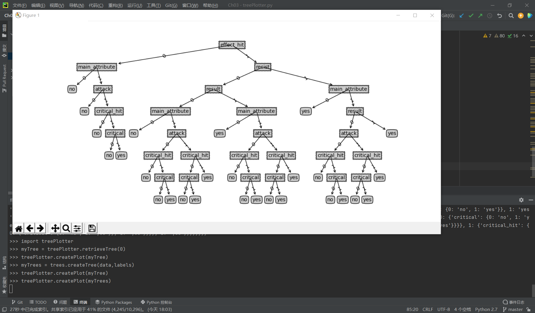 至此,使用信息熵构造决策树全部执行完毕