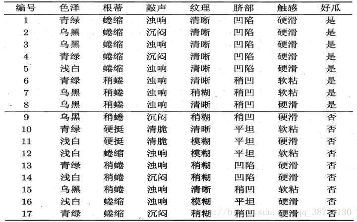 色泽,根蒂,敲声,纹理,脐部,触感,好瓜