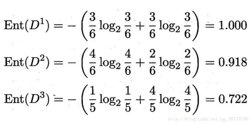 这三个分支结点的信息熵为: