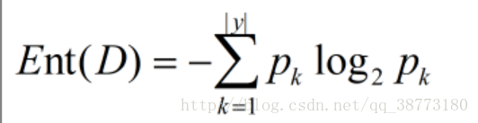 如果当前样本集合D中第K类样本所占的比例为pk,那么D的信息熵定义为: