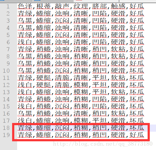 将数据集的最后一条数据添加并改结果为好瓜。然后放到程序去跑,发现程序报错。这样程序就需要修改来处理这种数据冲突的矛盾数据了。这就是决策树的优化问题了。