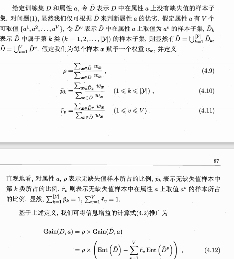 由上面可以看出,对于缺失值的处理就是在原信息增益的基础上进行推广,计算含缺失值的信息增益。