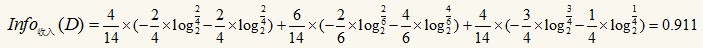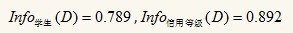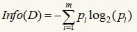 其中的m表示数据集D中类别C的个数,Pi表示D中任意一个记录属于Ci的概率,计算时Pi=(D中属于Ci类的集合的记录个数/|D|)。Info(D)表示将数据集D不同的类分开需要的信息量。