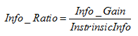 使用信息增益作为选择分裂的条件有一个不可避免的缺点:倾向选择分支比较多的属性进行分裂。为了解决这个问题,引入了信息增益率这个概念。信息增益率是在信息增益的基础上除以分裂节点数据量的信息增益(听起来很拗口),其计算公式如下: