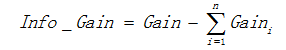 其中Gain表示节点的复杂度,Gain越高,说明复杂度越高。信息增益说白了就是分裂前的数据复杂度减去孩子节点的数据复杂度的和,信息增益越大,分裂后的复杂度减小得越多,分类的效果越明显。