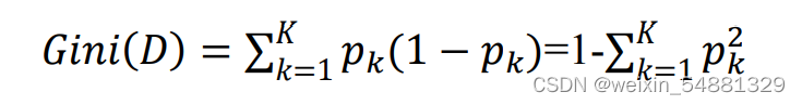 分类问题中,假设D有K个类,样本点属于第k类的概率为pk; 则概率 分布的基尼值定义为: