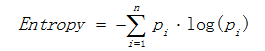 熵描述了数据的混乱程度,熵越大,混乱程度越高,也就是纯度越低;反之,熵越小,混乱程度越低,纯度越高。 熵的计算公式如下所示: