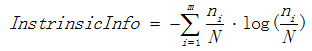 表示信息增益, 表示分裂子节点数据量的信息增益,其计算公式为:
