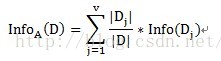 其中A表示目标变量D(即满意度)中按自变量A划分所需要的信息,即按故障类型进行划分所需要的信息。V表示在目标变量D(即满意度)中,按照自变量A(此处为故障原因)进行划分,即故障原因分别为1、2、3进行划分,将目标变量分别划分为3个子集,{D1、D2、D3},因此V=3。即故障原因为1的划分中,有2个不满意和1个满意。D1即指2个不满意和1个满意。故障原因为2的划分中,有1个不满意和2个满意。D2即指1个不满意和2个满意。故障原因为3的划分中,有2个不满意和2个满意。D3即指2个不满意和2个满意。具体公式如下:
