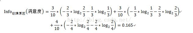 因此变量故障原因的信息增益Gain(故障原因)=Info(满意度)- Info故障原因(满意度)=1-0.165=0.835
