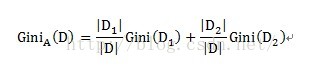 对应到满意度模型中,A为自变量,即故障原因、故障类型、修障时长。D代表满意度,D1和D2分别为按变量A的子集所划分出的两个不同元组,如按子集{1,2}划分,D1即为故障原因属于{1,2}的满意度评价,共有6条数据,D2即故障原因不属于{1,2}的满意度评价,共有3条数据。计算子集{1,2}的不纯度时,即Gini(D1),在故障原因属于{1,2}的样本数据中,分别有3条不满意和3条满意的数据,因此不纯度为1-(3/6)^2-(3/6)^2=0.5。