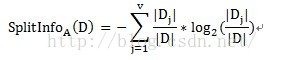 信息增益率定义:特征A对训练数据集D的信息增益比定义为其信息增益与训练数据D关于特征A的值的熵HA(D)之比