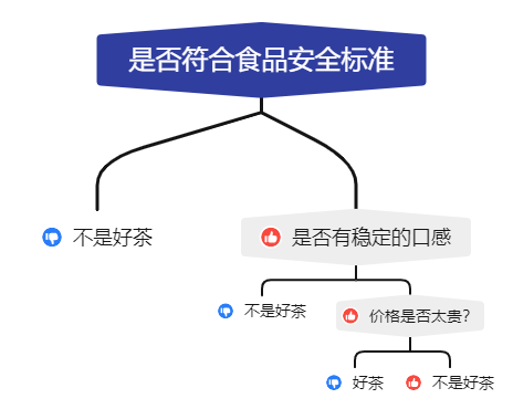 举个例子,假设我们得到了一组关于茶的样本,我们要判断它是不是好茶,我们就得从根节点出发