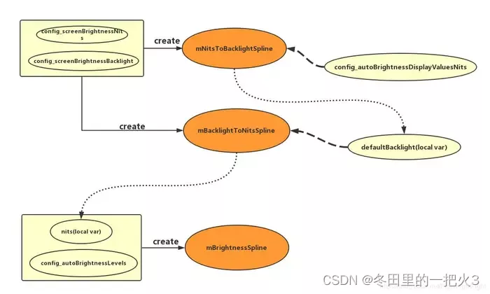 最后,利用defaultBacklight数组从曲线mBacklightToNitsSpline中得到Nits值,然后,创建表示Lux值和对应Nits值的曲线mBrightnessSpline,这也是创建的最后一条全局样条曲线(在某些方法中会创建一些临时曲线)。