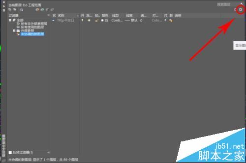 2、在弹出的“图层特性管理器”中,单击“设置”按钮,该按钮位于右上角。