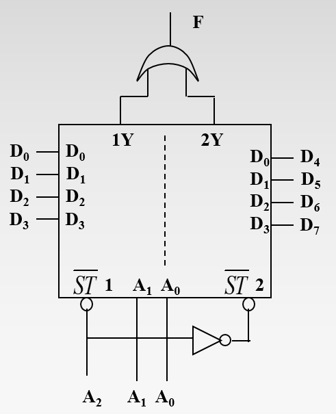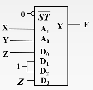 用四选一选择器实现函数F(X,Y,Z)=∑(1,2,3,4,5,6)