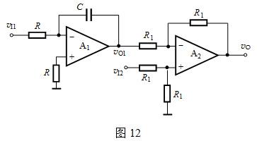10、【单选题】电路如图12所示,假设运算放大器均为理想的,则