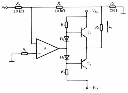 6、【单选题】电路如图所示,设RL=8Ω,输入信号vi为正弦波,若BJT的饱和压降可忽略不计,负载可得到的最大不失真的输出功率为9W时,电源电压VCC至少应该为 。<img src="http://nos.netease.com/edu-image/7D07CD6844EA97F8CA4AD39F85BA8FB5.jpg?imageView