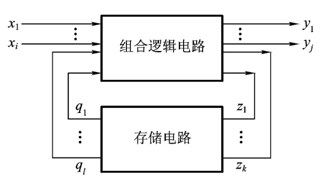 ②存储电路输出状态必须反馈到组合电路输入端,和输入变量共同决定输出