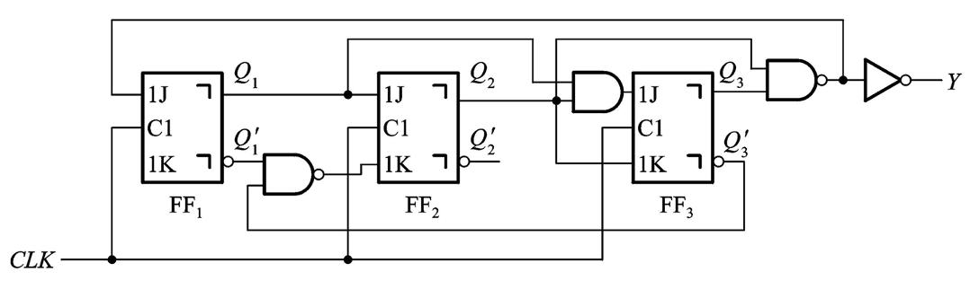 根据观察,此为七进制计数器。Y是进位脉冲。