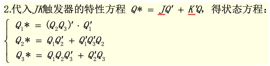 ②将驱动方程代入触发器的特性方程,得到状态方程。