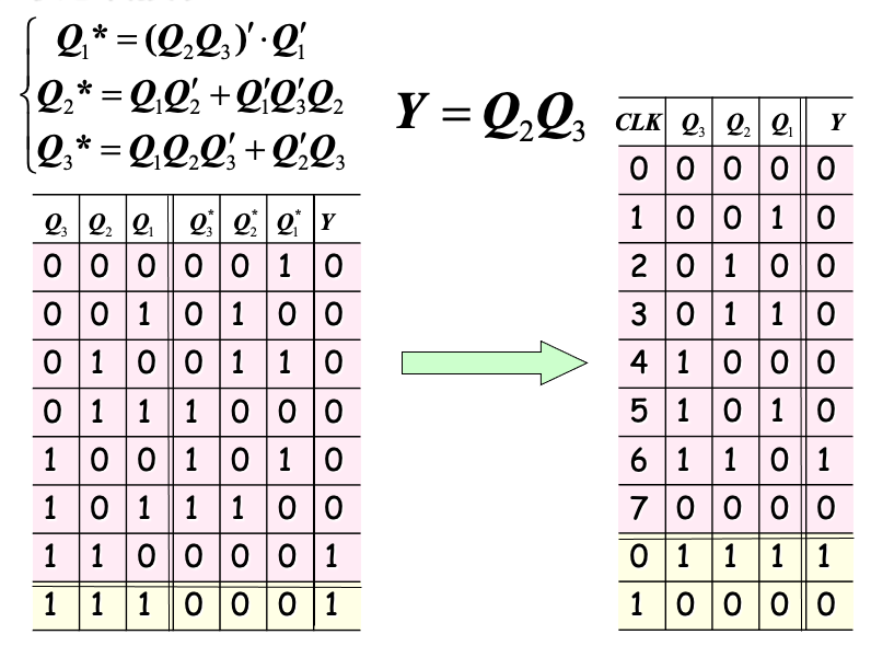 已知初始状态,就可以通过初始状态的次态明白CLK=1时的状态和Y的状态。故以此递推,直到再回到初始状态为止。