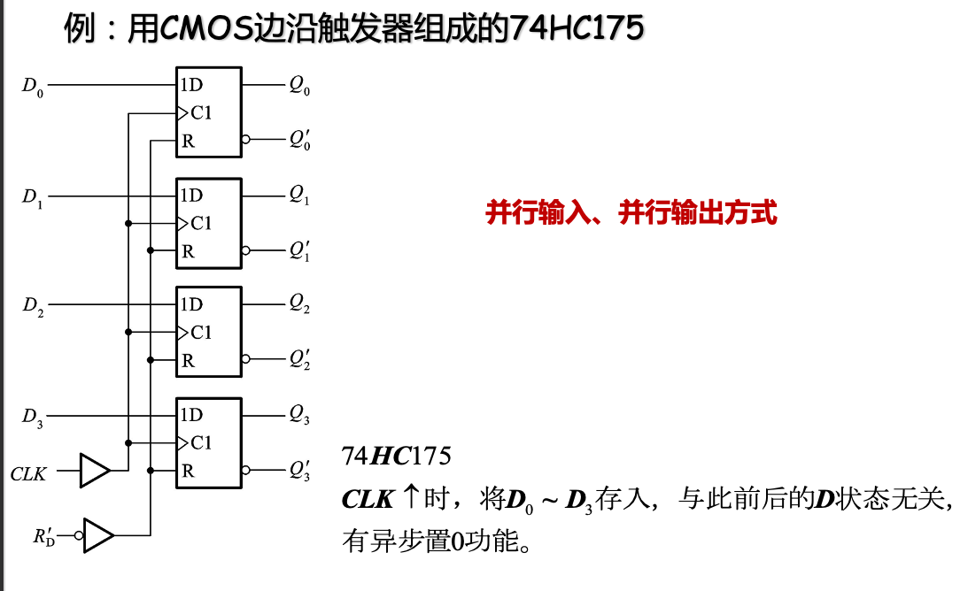 ①用于寄存一组二值代码,N位寄存器由N个触发器组成,可存放一组N位二值代码。