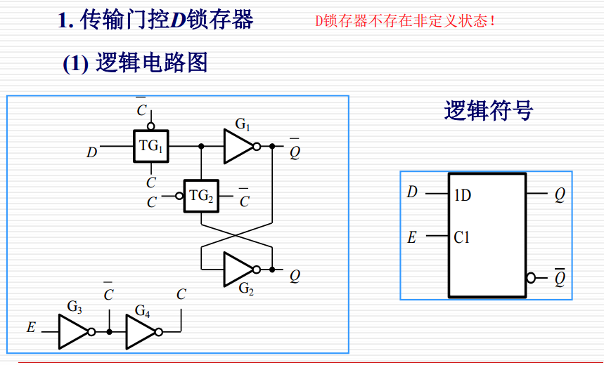 D锁存器常见结构和电路符号图如下所示: