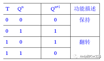 因为T=J=K,所以当T=0的时候,CP脉冲来后触发器维持原状不变。当T=1的时候,每一个CP脉冲来的时候,触发器状态翻转一次。