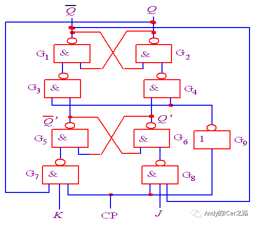 从基本RS锁存器可以看出,基本RS锁存器和同步RS锁存器的输出Q和/Q不会同时等于0,利用这个特点,若将主从RS锁存器的两个输出分别反馈至输入,即可解除这个约束。电路如下: